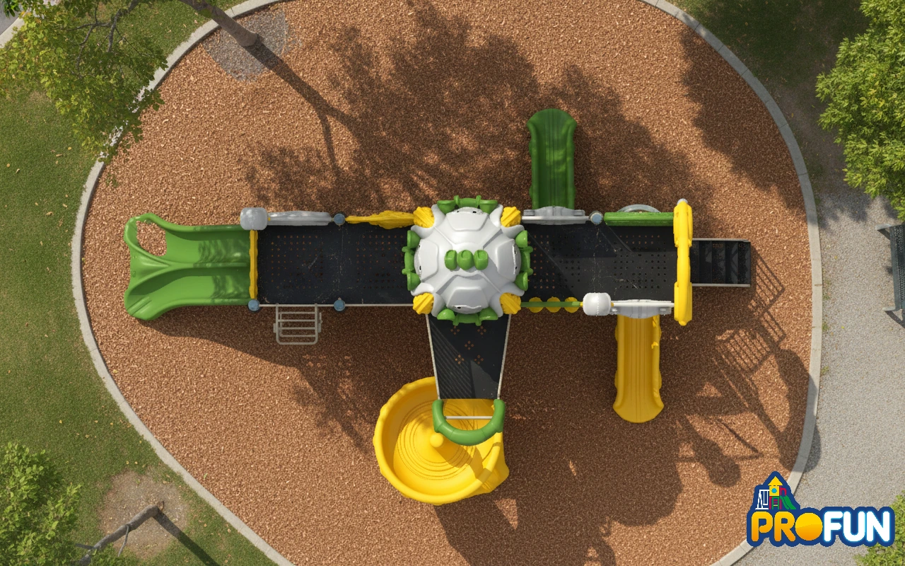 L’accès au poste de pilotage se fait par des escaliers, des échelles ou des modules d’escalade. À partir des hauteurs, les jeunes pilotes doivent tester leur équilibre en traversant des passerelles, des poutres ou des points. La meilleure partie est la glissade, une descente rapide qui imite la sensation d’accélération sur une piste de course, ou qui ramène les enfants au niveau du sol pour le ravitaillement.