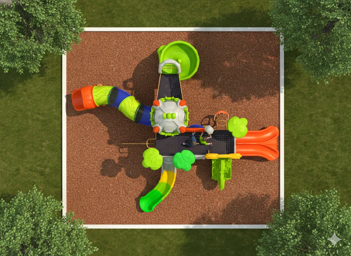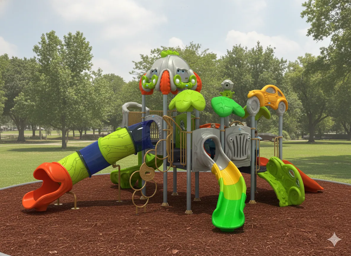 L’accès au poste de pilotage se fait par des escaliers, des échelles ou des modules d’escalade. À partir des hauteurs, les jeunes pilotes doivent tester leur équilibre en traversant des passerelles, des poutres ou des points. La meilleure partie est la glissade, une descente rapide qui imite la sensation d’accélération sur une piste de course, ou qui ramène les enfants au niveau du sol pour le ravitaillement.
