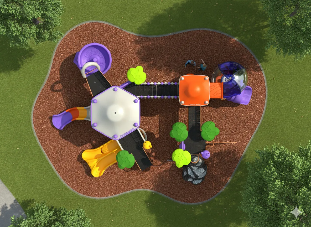 Cabane perchée et forteresse secrète : Un module de jeu qui s’intègre parfaitement à la nature. Il offre des défis d’escalade (filet, échelles) et d’équilibre (ponts suspendus), avec des glissades rapides pour s’échapper. Idéal pour les jeunes explorateurs maîtres du sommet. (accessoires au sol vendu séparément)