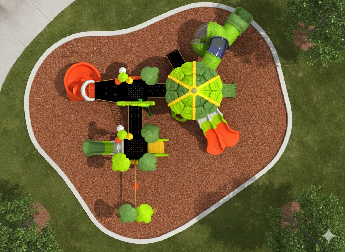Ce module de jeu est un parcours d’obstacles immersif dans l’univers de la jungle, utilisant des structures et des couleurs qui imitent la forêt tropicale. L’ascension se fait à travers la canopée grâce à des escaliers, des échelles ou à des modules d’escalade variés comme des murs à prises ou des filets, invitant les enfants à grimper comme des singes. Les explorateurs doivent traverser des défis d’équilibre simulant des points suspendus ou des passerelles, testant leur agilité. Pour une descente excitante ou pour échapper à un prédateur imaginaire, une glissade rapide les ramène au niveau du sol de la jungle.L’ensemble de la structure est conçu pour renforcer la motricité globale dans un environnement riche en jeux de rôle et en découvertes. (accessoires au sol vendu séparément)