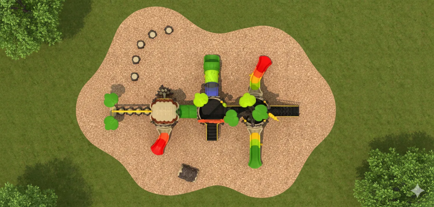 Cabane perchée et forteresse secrète : Un module de jeu qui s’intègre parfaitement à la nature. Il offre des défis d’escalade (filet, échelles) et d’équilibre (ponts suspendus), avec des glissades rapides pour s’échapper. Idéal pour les jeunes explorateurs maîtres du sommet. (accessoires au sol vendu séparément)