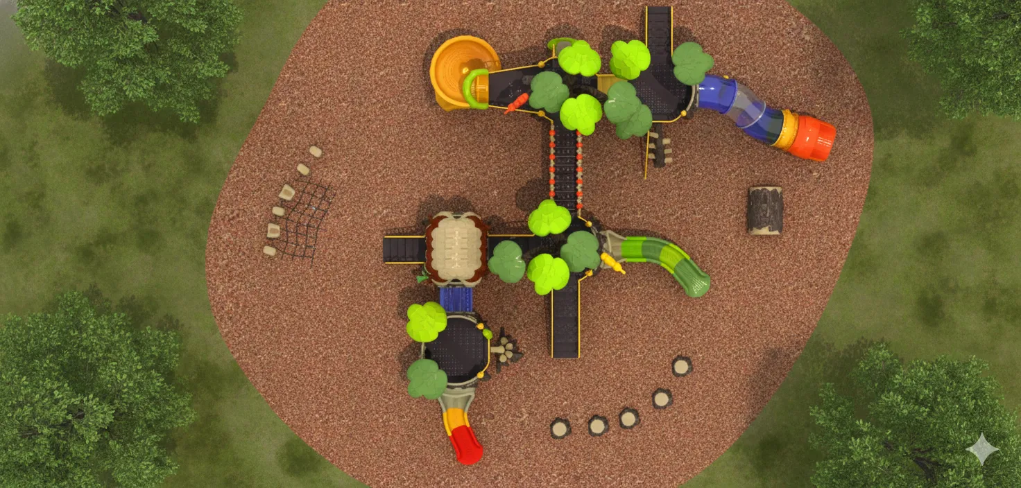 Cabane perchée et forteresse secrète : Un module de jeu qui s’intègre parfaitement à la nature. Il offre des défis d’escalade (filet, échelles) et d’équilibre (ponts suspendus), avec des glissades rapides pour s’échapper. Idéal pour les jeunes explorateurs maîtres du sommet. (accessoires au sol vendu séparément)