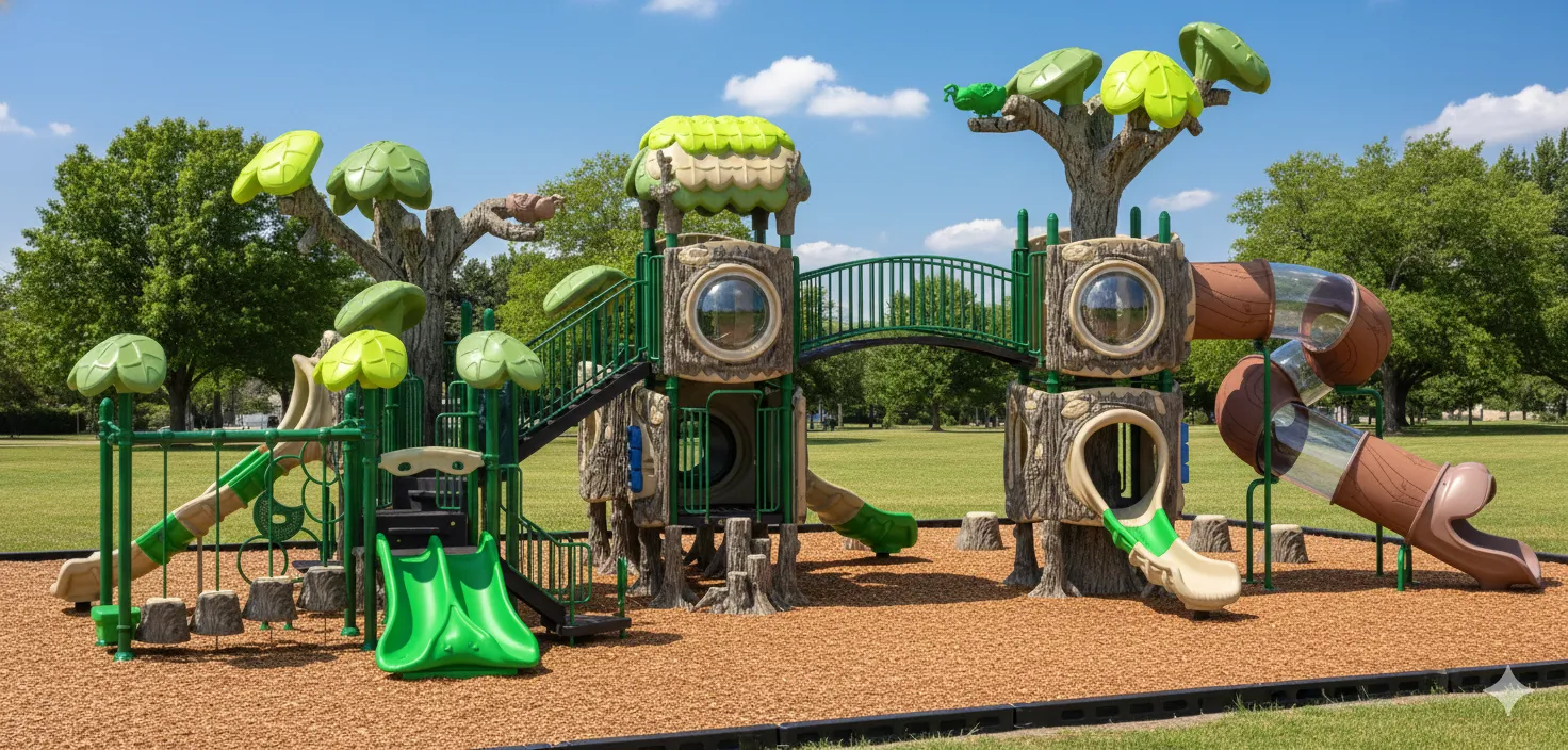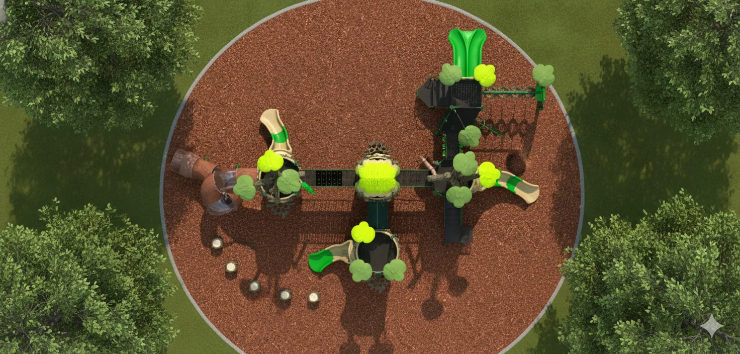Cabane perchée et forteresse secrète : Un module de jeu qui s’intègre parfaitement à la nature. Il offre des défis d’escalade (filet, échelles) et d’équilibre (ponts suspendus), avec des glissades rapides pour s’échapper. Idéal pour les jeunes explorateurs maîtres du sommet. (accessoires au sol vendu séparément)