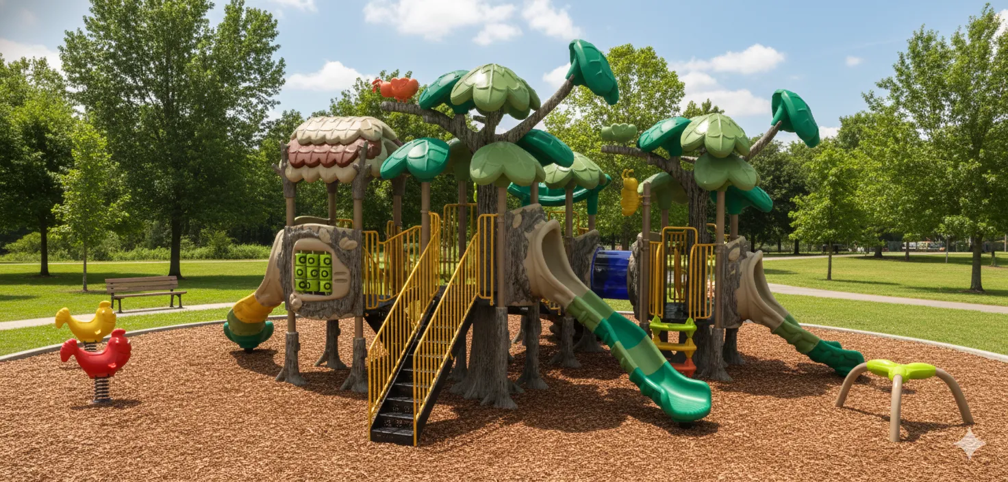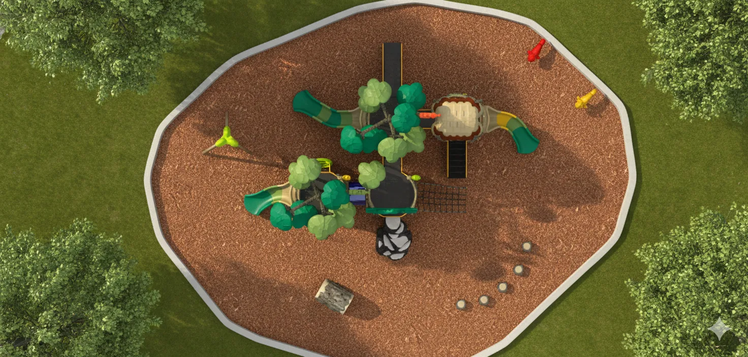 Cabane perchée et forteresse secrète : Un module de jeu qui s’intègre parfaitement à la nature. Il offre des défis d’escalade (filet, échelles) et d’équilibre (ponts suspendus), avec des glissades rapides pour s’échapper. Idéal pour les jeunes explorateurs maîtres du sommet. (accessoires au sol vendu séparément)