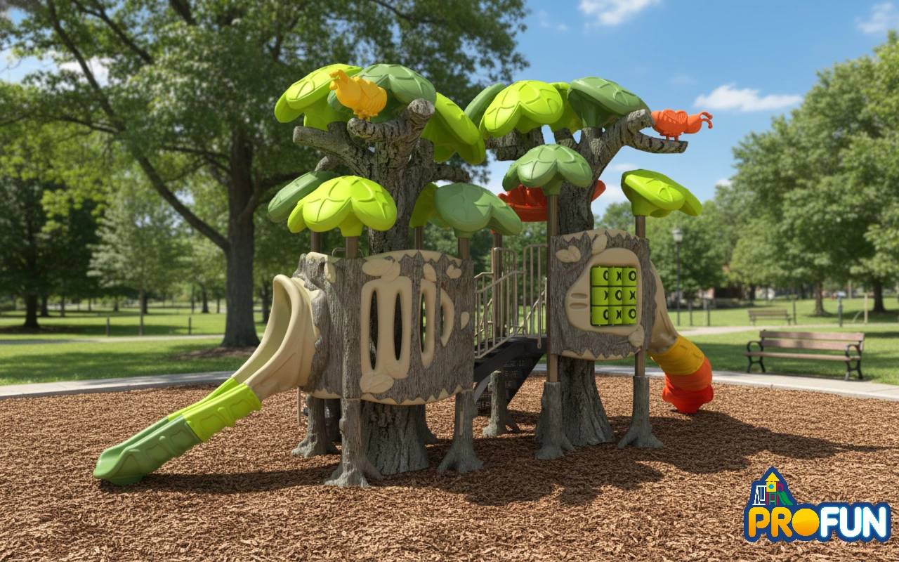 Cabane perchée et forteresse secrète : Un module de jeu qui s’intègre parfaitement à la nature. Il offre des défis d’escalade (filet, échelles) et d’équilibre (ponts suspendus), avec des glissades rapides pour s’échapper. Idéal pour les jeunes explorateurs maîtres du sommet. (accessoires au sol vendu séparément)