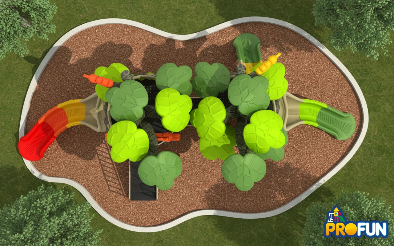 L’accès au poste d’observation se fait par différentes voies stimulantes: escaliers, échelles, modules d’escalade ou un filet à grimper. Des défis d’équilibre sont proposés, comme des points suspendus en cordes ou des poutres étroites à traverser, simulant le passage périlleux d’une branche à l’autre. Pour redescendre rapidement ou pour s’échapper en cas de “danger”, des glissades (souvent tubulaire ou ondulée pour simuler une descente rapide le long d’un tronc) offrent une sortie pleine de sensations. (accessoires au sol vendu séparément)