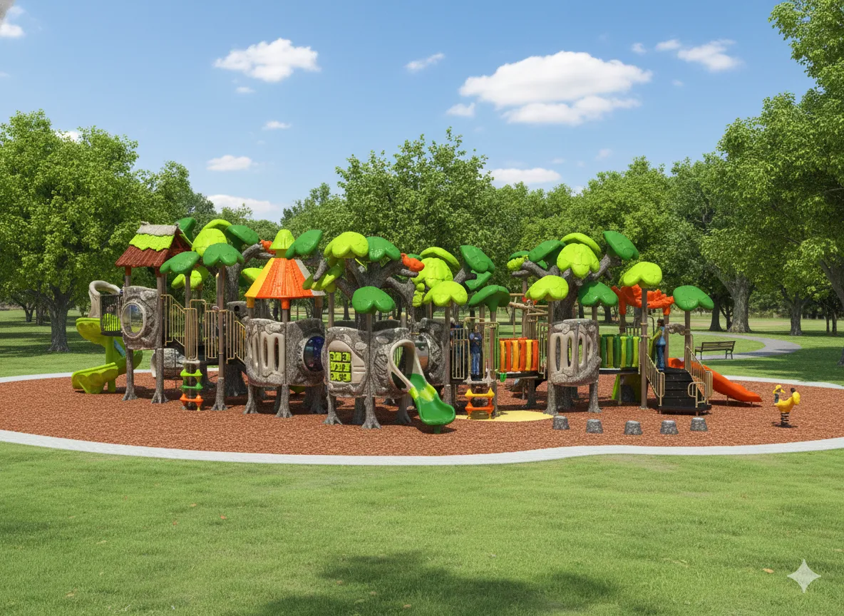 Cabane perchée et forteresse secrète : Un module de jeu qui s’intègre parfaitement à la nature. Il offre des défis d’escalade (filet, échelles) et d’équilibre (ponts suspendus), avec des glissades rapides pour s’échapper. Idéal pour les jeunes explorateurs maîtres du sommet. (accessoires au sol vendu séparément)