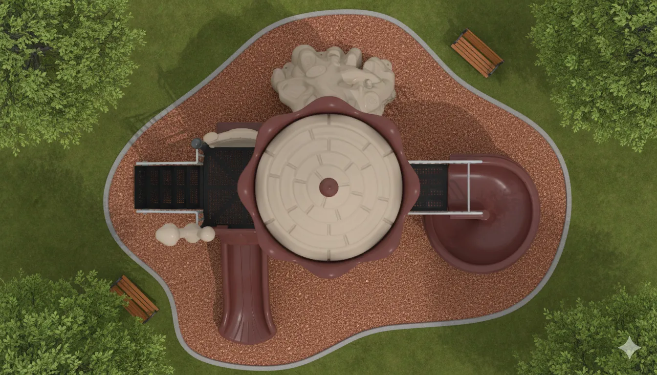 Il offre un parcours complet pour les jeunes aventuriers, combinant des défis d’escalade, de glisse et d’équilibre, en faisant un outil d’excellence pour le développement physique et social des enfants