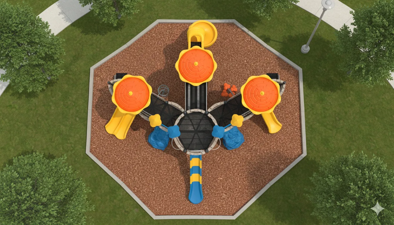 Il offre un parcours complet pour les jeunes aventuriers, combinant des défis d’escalade, de glisse et d’équilibre, en faisant un outil d’excellence pour le développement physique et social des enfants