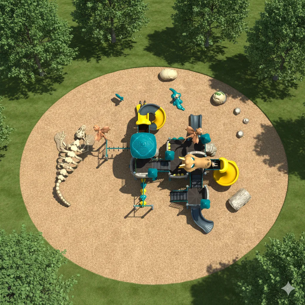 Ce module de jeu extérieur est une structure monumentale inspirée d’un repaire de dinosaures du Crétacé, conçue pour stimuler l’imagination, l’activité physique et la dextérité motrice des enfants. Il offre un parcours paléontologique complet pour les jeunes explorateurs, combinant des défis d’escalade, des glissades et des traversées d’équilibre, en faisant un outil d’excellence pour le développement physique et social des enfants. Ce terrain de jeu thématique transforme chaque moment en une expédition dans la jungle préhistorique ou en une course-poursuite avec un vélociraptor, offrant des heures de plaisir actif et créatif