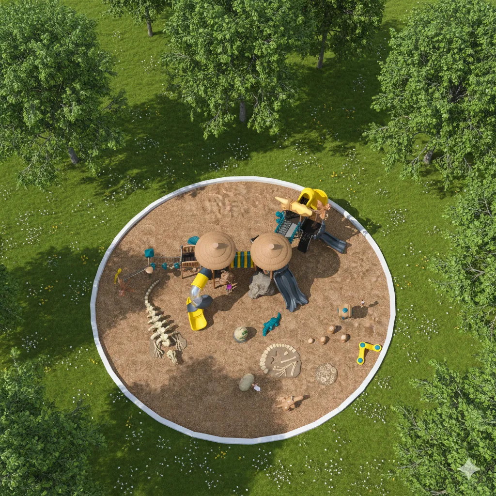 Ce module de jeu extérieur est une structure monumentale inspirée d’un repaire de dinosaures du Crétacé, conçue pour stimuler l’imagination, l’activité physique et la dextérité motrice des enfants. Il offre un parcours paléontologique complet pour les jeunes explorateurs, combinant des défis d’escalade, des glissades et des traversées d’équilibre, en faisant un outil d’excellence pour le développement physique et social des enfants. Ce terrain de jeu thématique transforme chaque moment en une expédition dans la jungle préhistorique ou en une course-poursuite avec un vélociraptor, offrant des heures de plaisir actif et créatif