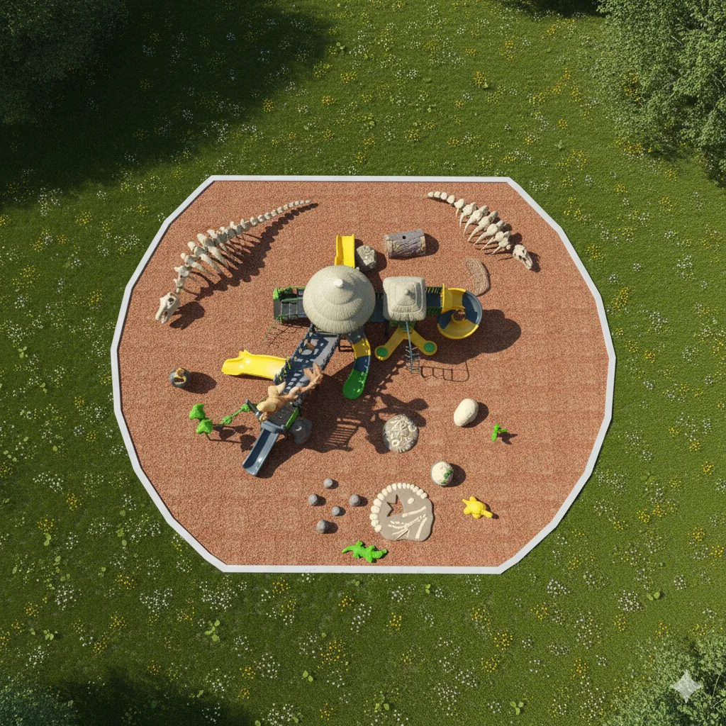Ce module de jeu extérieur est une structure monumentale inspirée d’un repaire de dinosaures du Crétacé, conçue pour stimuler l’imagination, l’activité physique et la dextérité motrice des enfants. Il offre un parcours paléontologique complet pour les jeunes explorateurs, combinant des défis d’escalade, des glissades et des traversées d’équilibre, en faisant un outil d’excellence pour le développement physique et social des enfants. Ce terrain de jeu thématique transforme chaque moment en une expédition dans la jungle préhistorique ou en une course-poursuite avec un vélociraptor, offrant des heures de plaisir actif et créatif