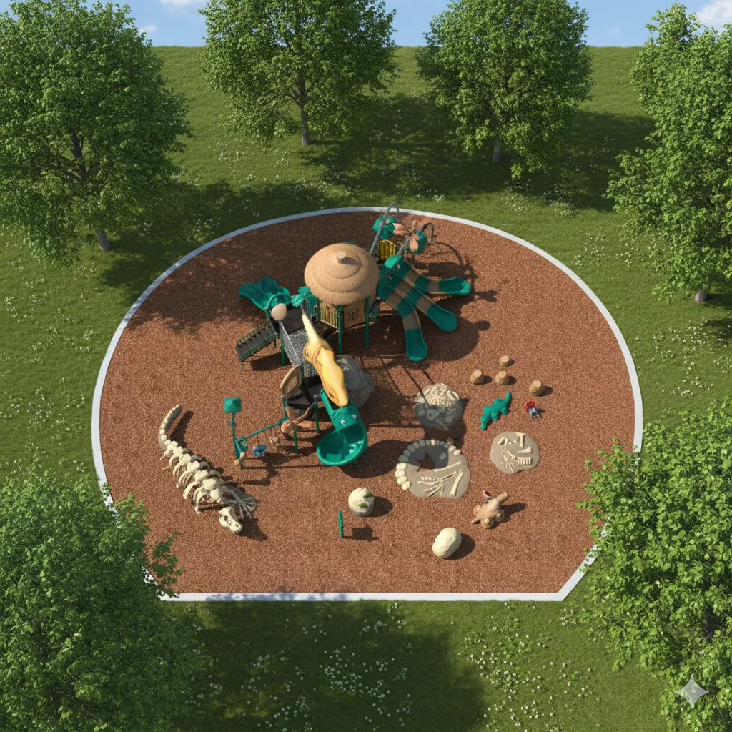 Ce module de jeu extérieur est une structure monumentale inspirée d’un repaire de dinosaures du Crétacé, conçue pour stimuler l’imagination, l’activité physique et la dextérité motrice des enfants. Il offre un parcours paléontologique complet pour les jeunes explorateurs, combinant des défis d’escalade, des glissades et des traversées d’équilibre, en faisant un outil d’excellence pour le développement physique et social des enfants. Ce terrain de jeu thématique transforme chaque moment en une expédition dans la jungle préhistorique ou en une course-poursuite avec un vélociraptor, offrant des heures de plaisir actif et créatif