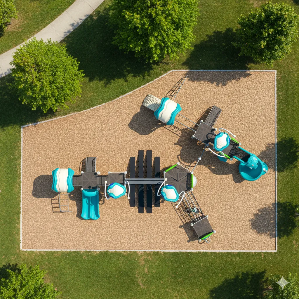 Ce module de jeu extérieur rappelant l’espace infini propulse les enfants dans un voyage intergalactique. Le décollage s’effectue en escaladant la structure principale, souvent en grâce à des échelles verticales, des murs d’escalade ou des filets, pour simuler la gravité zéro. Les jeunes astronautes explorent ensuite les défis d’équilibre, comme des passerelles suspendues ou des points-tunnels. Le retour sur Terre est l’occasion d’une descente vertigineuse par une glissade qui simule la rentrée atmosphérique. (accessoires au sol vendu séparément)