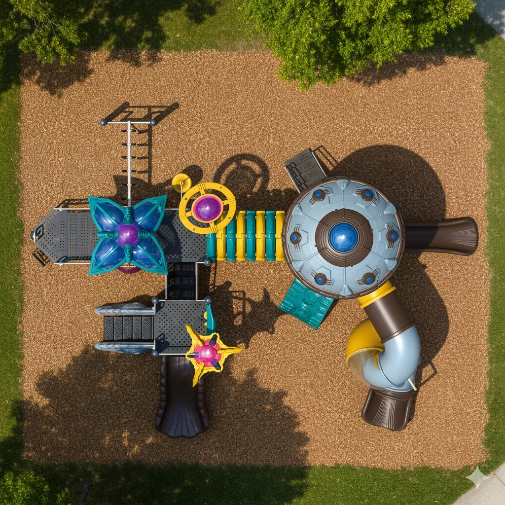 Module de jeu féerique : Plonge les enfants dans un monde de contes et de merveilles. L’ascension vers l’imaginaire (échelles, escalade) et les défis d’équilibre stimulent la finesse. La descente se fait par une envolée magique (glissades). Idéal pour la fantaisie et la sensorialité. (accessoires au sol vendu séparément)