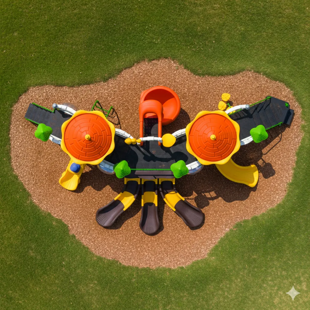 Il offre un parcours complet pour les jeunes aventuriers, combinant des défis d’escalade, de glisse et d’équilibre, en faisant un outil d’excellence pour le développement physique et social des enfants