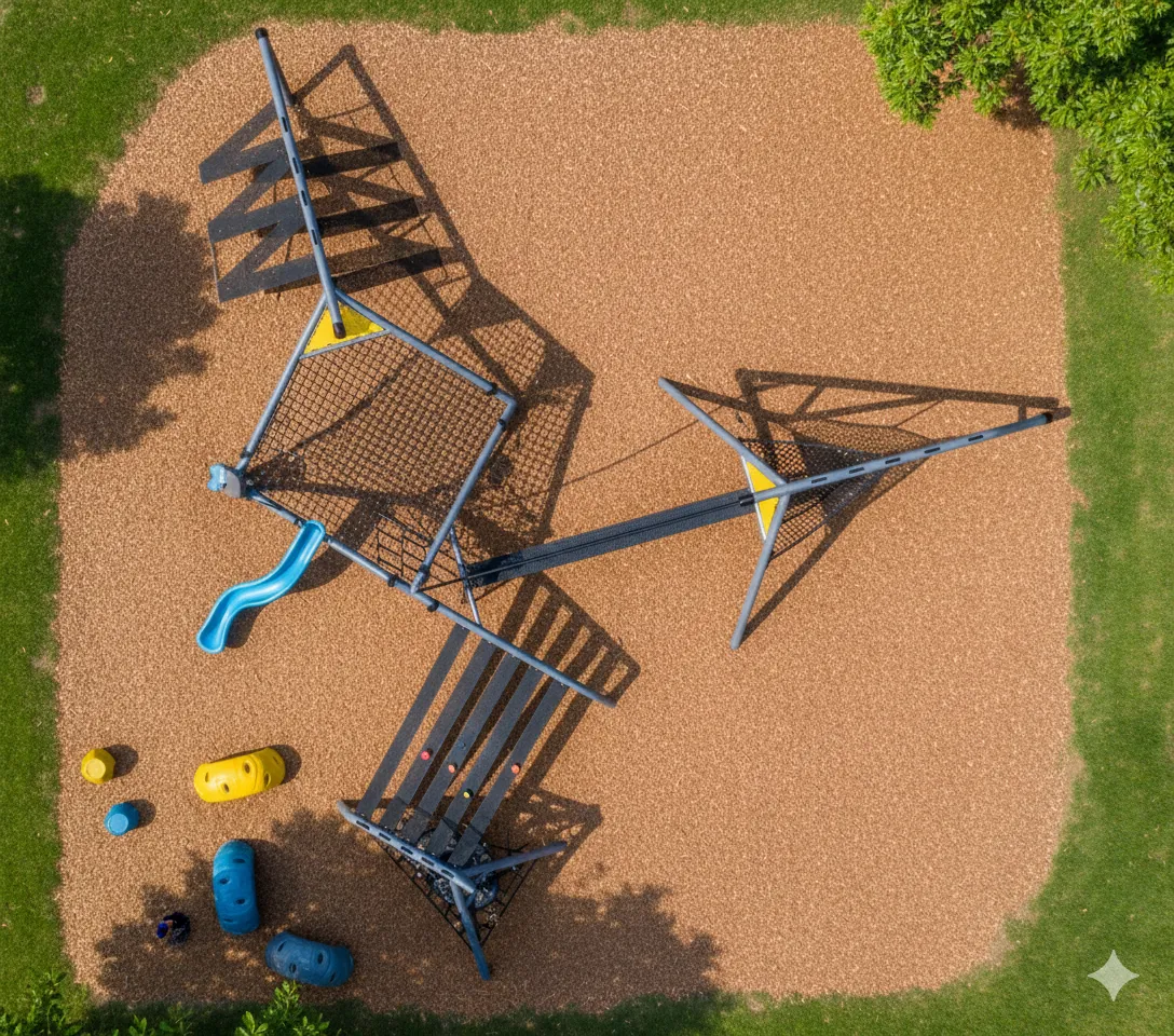 Parcours d’Agilité et d’Escalade : Structure ouverte et variée (cordes, filets) conçue pour se surpasser. L’ascension est centrale, complétée par des défis d’équilibre et des glissades rapides. Met l’accent sur la force, la motricité et la résolution de problèmes. (accessoires au sol vendu séparément)