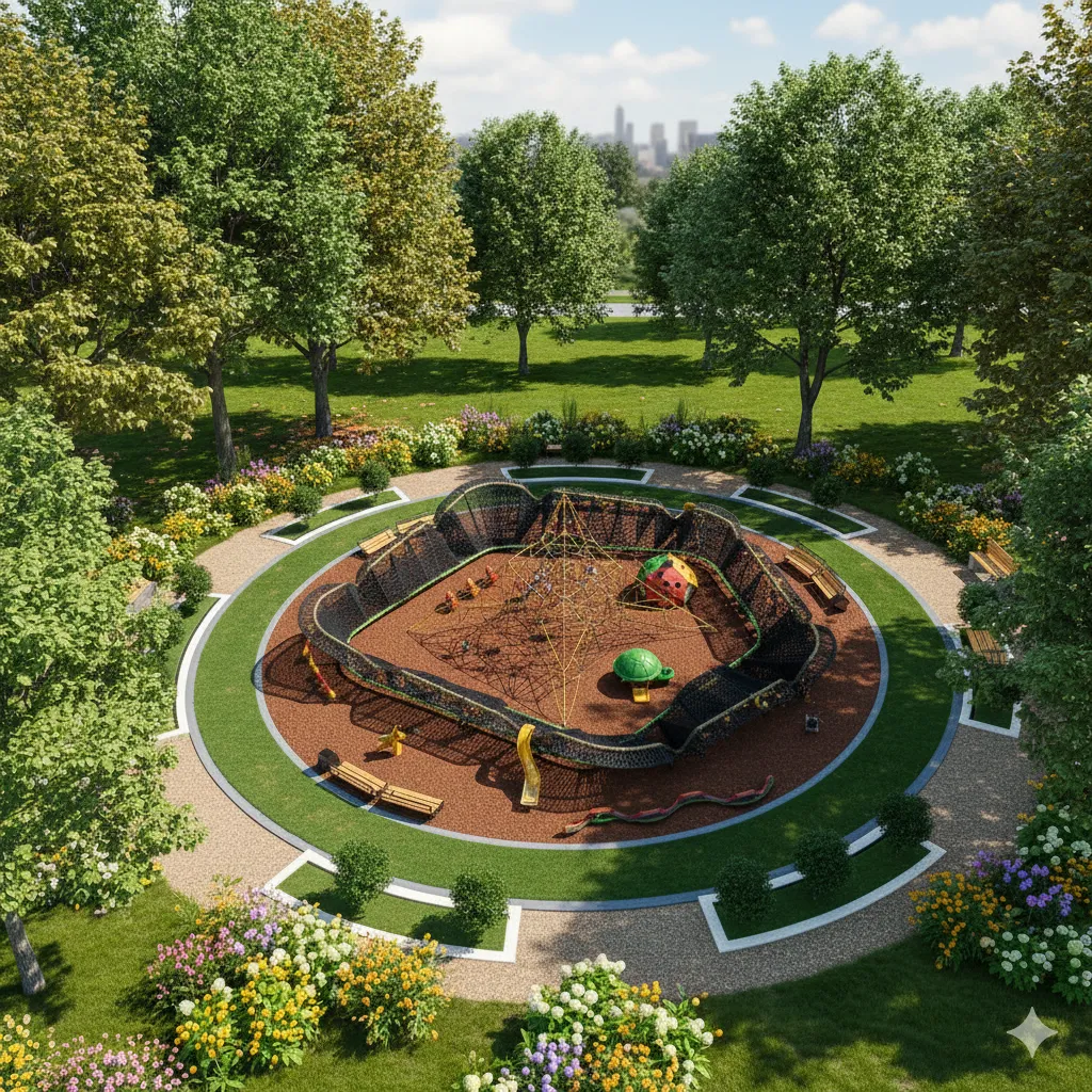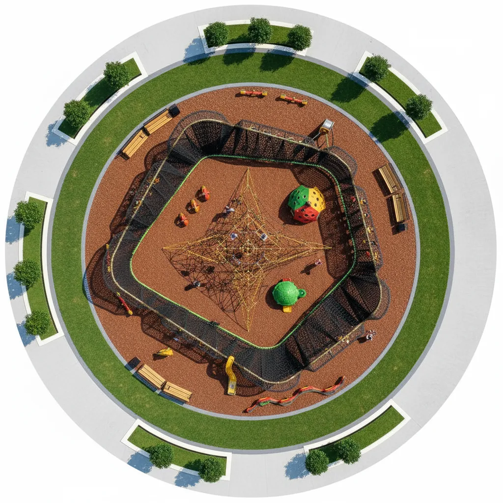 Parcours d’Agilité et d’Escalade : Structure ouverte et variée (cordes, filets) conçue pour se surpasser. L’ascension est centrale, complétée par des défis d’équilibre et des glissades rapides. Met l’accent sur la force, la motricité et la résolution de problèmes. (accessoires au sol vendu séparément)