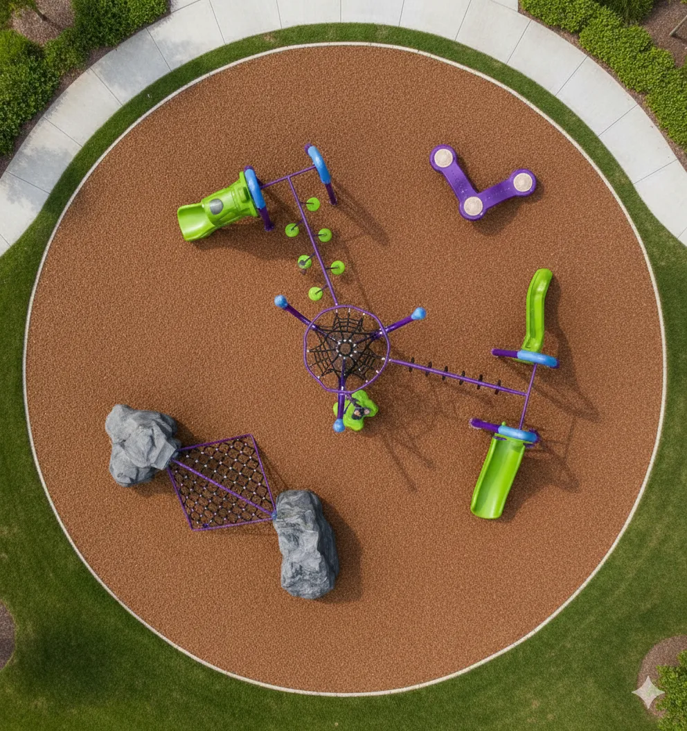 Parcours d’Agilité et d’Escalade : Structure ouverte et variée (cordes, filets) conçue pour se surpasser. L’ascension est centrale, complétée par des défis d’équilibre et des glissades rapides. Met l’accent sur la force, la motricité et la résolution de problèmes. (accessoires au sol vendu séparément)
