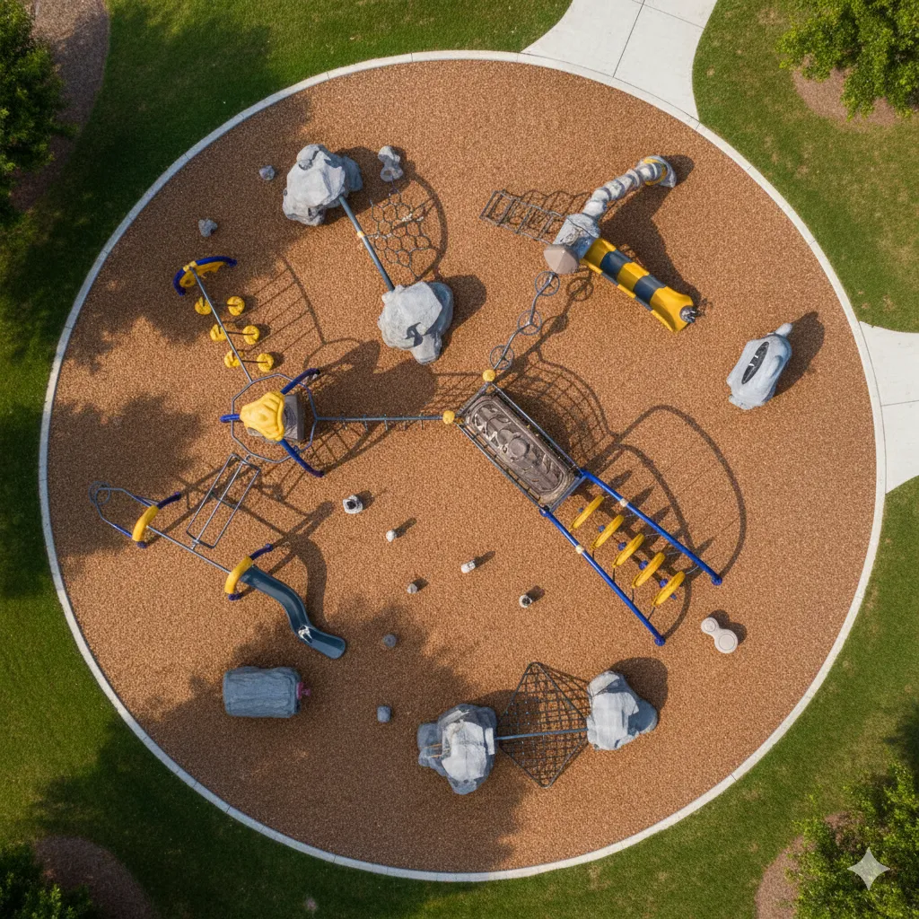 Parcours d’Agilité et d’Escalade : Structure ouverte et variée (cordes, filets) conçue pour se surpasser. L’ascension est centrale, complétée par des défis d’équilibre et des glissades rapides. Met l’accent sur la force, la motricité et la résolution de problèmes. (accessoires au sol vendu séparément)