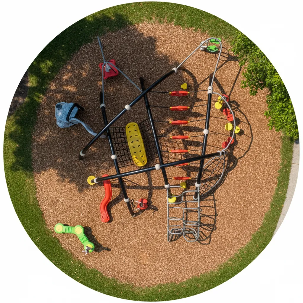 Parcours d’Agilité et d’Escalade : Structure ouverte et variée (cordes, filets) conçue pour se surpasser. L’ascension est centrale, complétée par des défis d’équilibre et des glissades rapides. Met l’accent sur la force, la motricité et la résolution de problèmes. (accessoires au sol vendu séparément)